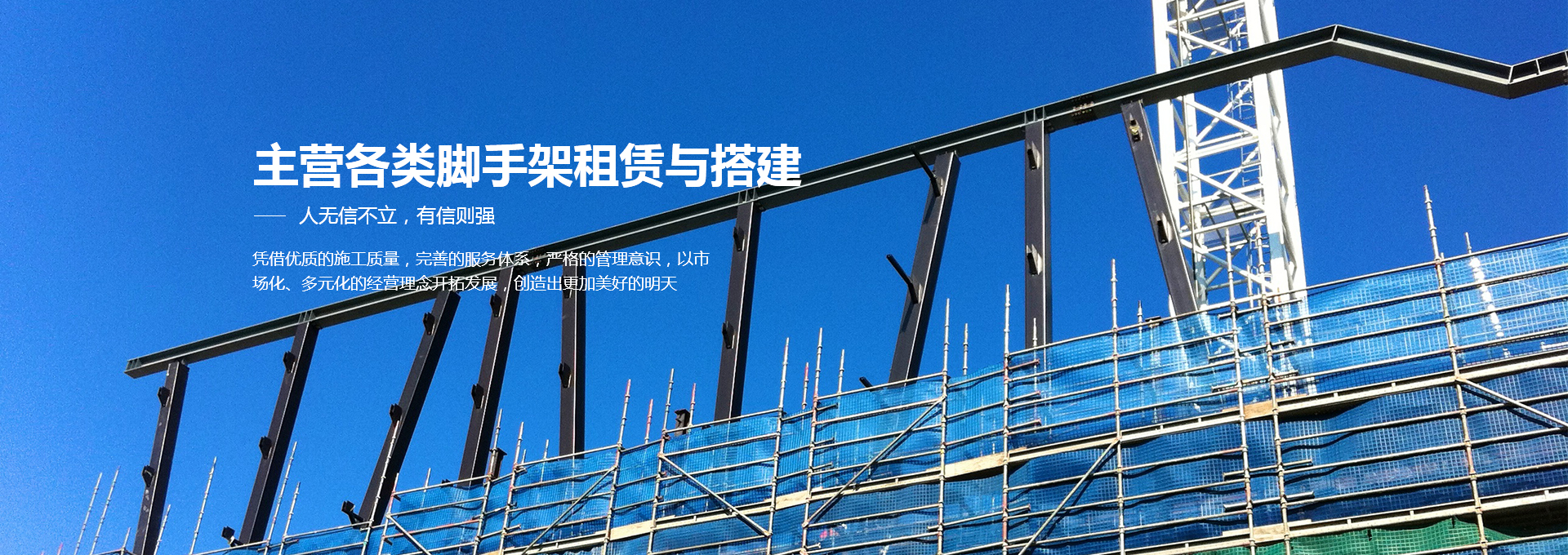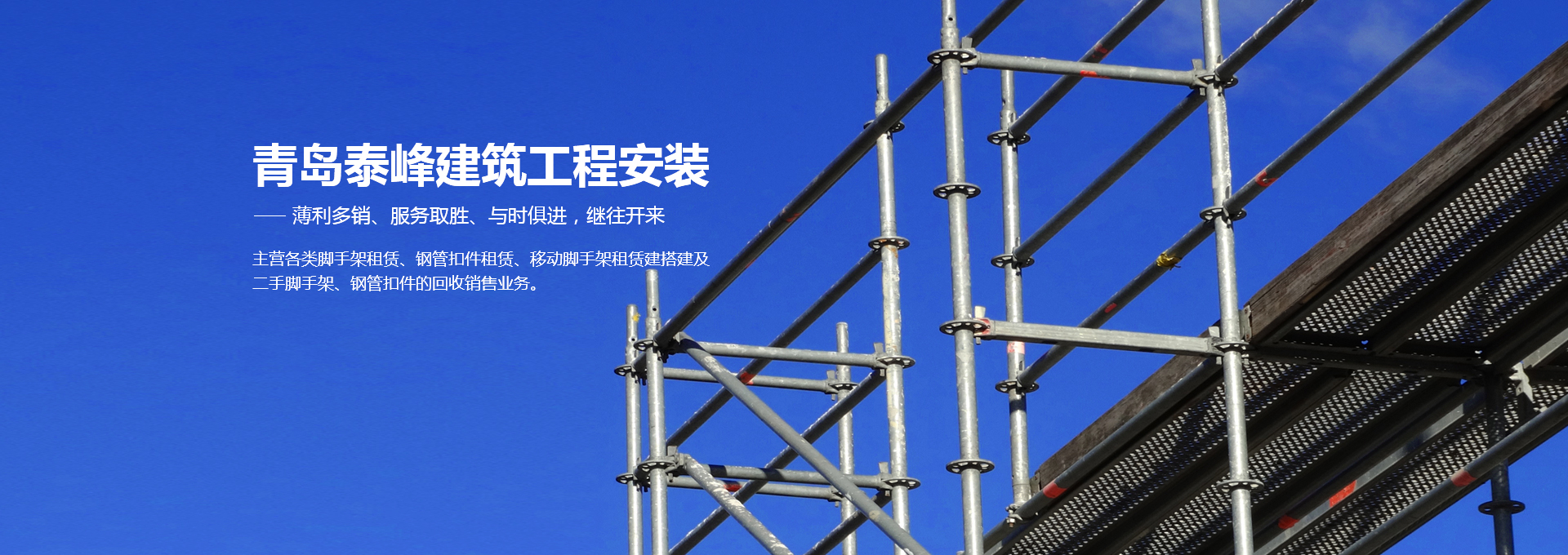 青島泰峰建筑工程安裝有限公司主營各類腳手架租賃、鋼管扣件租賃、移動腳手架租賃建搭建及二手腳手架、鋼管扣件的回收銷售業(yè)務。公司實力雄厚,擁有鋼管約3000噸、扣件70萬只、鋼笆7萬多片塔吊、人貨電梯多臺;總資產(chǎn)達到1000多萬元。是一家具有腳手架搭建、水電安裝專業(yè)承包施工資質(zhì)的企業(yè),并成為青島市五金協(xié)會的會員單位。且多次參與高層建筑、建筑裝修、玻璃幕墻、橋梁、隧道、地鐵、電廠維修施工、造船等行業(yè)的施工,并獲得施工單位的一致好評。 人無信不立,有信則強公司以“薄利多銷、服務取勝”為經(jīng)營宗旨...